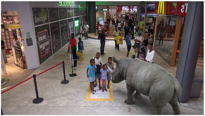 Sur un écran géant, les passants de la galerie marchande se voient interagir avec des lions, des dinosaures, et autres visiteurs inattendus! Et le rendu est excellent. Un très bon exemple du caractère très impliquant que peut prendre une installation de réalité augmentée quand elle est bien pensée et bien réalisée! On imagine avec envie la même chose, dans quelques années, en remplaçant l’écran géant par des lunettes…
