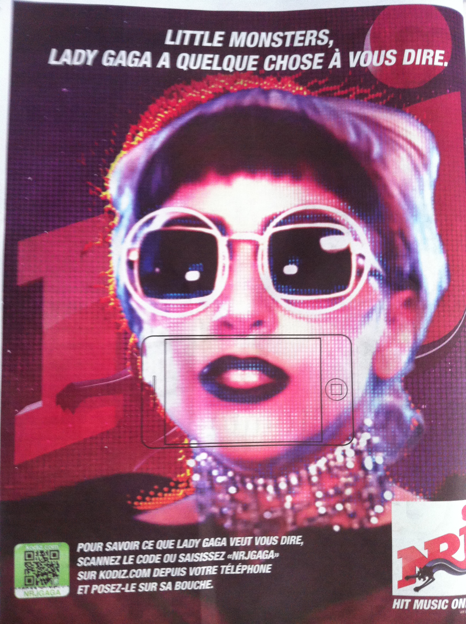 Peut-être l’aurez vous remarqué, en pleine page dans le journal gratuit Métro, une pub NRJ propose de faire « parler » Lady Gaga grâce à un QR code.